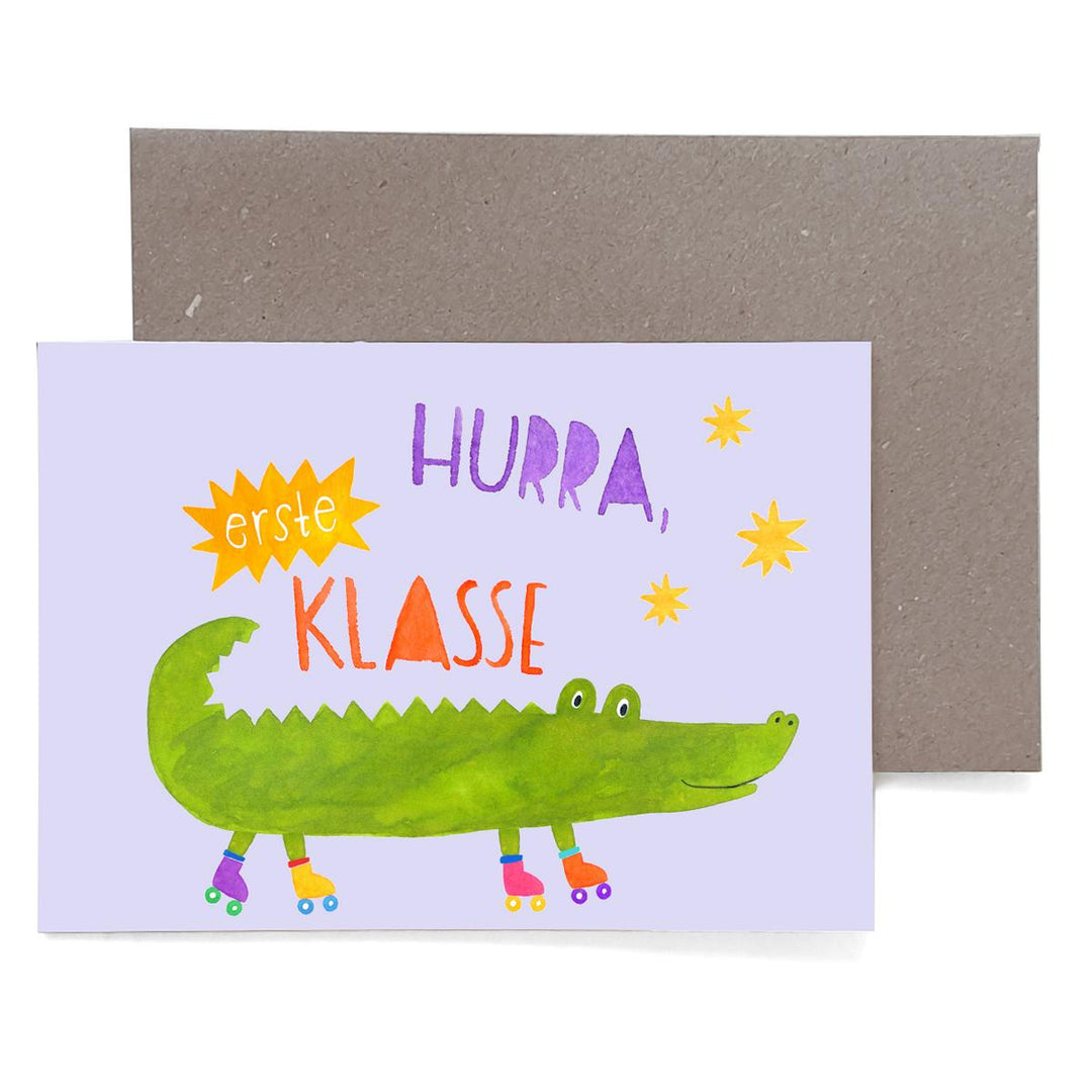 Klappkarte zur Einschulung *Schulkind* mit Krokodil